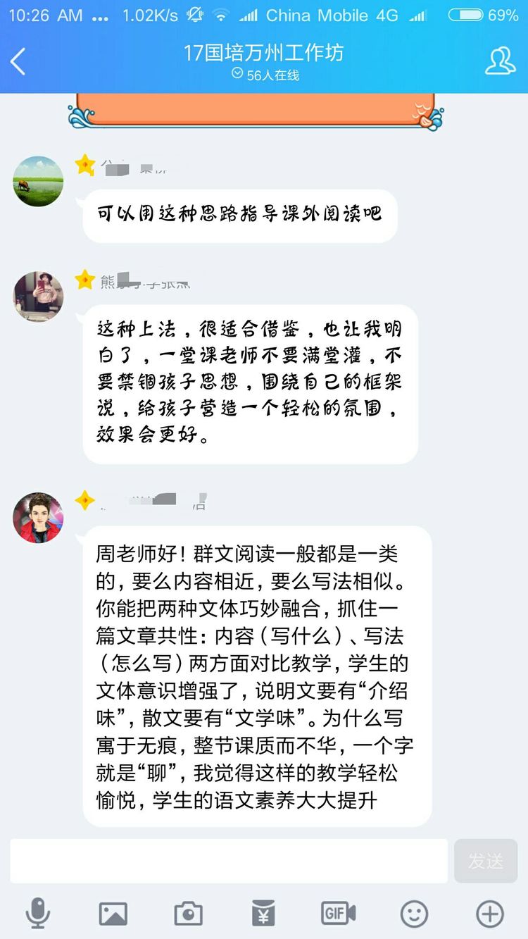 當(dāng)然不是啦,認(rèn)真參加培訓(xùn)的老師們?cè)趺瓷岬猛媸謾C(jī)呢。其實(shí)是周奇老師讓大家對(duì)現(xiàn)場(chǎng)教學(xué)進(jìn)行點(diǎn)評(píng),讓每一位老師將點(diǎn)評(píng)文字發(fā)在QQ群里,然后對(duì)參訓(xùn)老師一一解答疑問。以下分享老師們的點(diǎn)評(píng)
