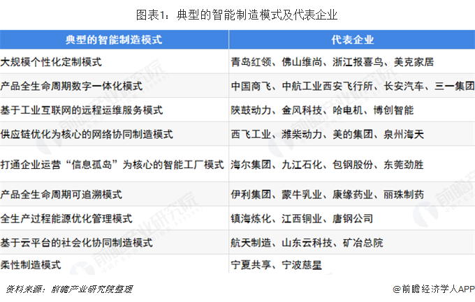 近幾年,工業(yè)和信息化部門持續(xù)組織實(shí)施智能制造試點(diǎn)示范專項(xiàng)行動(dòng),挑選出一批先行先試的試點(diǎn)示范項(xiàng)目,有效帶動(dòng)了我國(guó)智能制造的發(fā)展。目前應(yīng)用較為廣泛的有九大典型智能制造模式,分別是大規(guī)模個(gè)性化定制、產(chǎn)品全生命周期數(shù)字一體化、遠(yuǎn)程運(yùn)維、社會(huì)化協(xié)同、產(chǎn)品全生命周期可追溯、全生產(chǎn)過程能源優(yōu)化管理、網(wǎng)絡(luò)協(xié)同制造及智能工廠模式。每種模式都有其代表性企業(yè),例如,大規(guī)模定制化模式中,青島紅領(lǐng)、佛山維尚、浙江報(bào)喜鳥、美克家居為領(lǐng)先企業(yè),在產(chǎn)品全生命周期可追溯模式中,伊利集團(tuán)、蒙牛乳業(yè)、康緣藥業(yè)、麗珠制藥為主導(dǎo)企業(yè)。