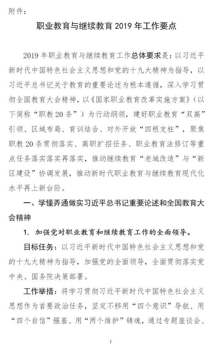 附件:職業(yè)教育與繼續(xù)教育2019年工作要點(diǎn)
