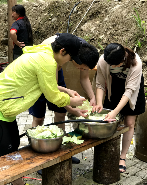 相互協(xié)作中絲毫沒有感到疲憊,不一會兒食物就熟了,香飄四野。