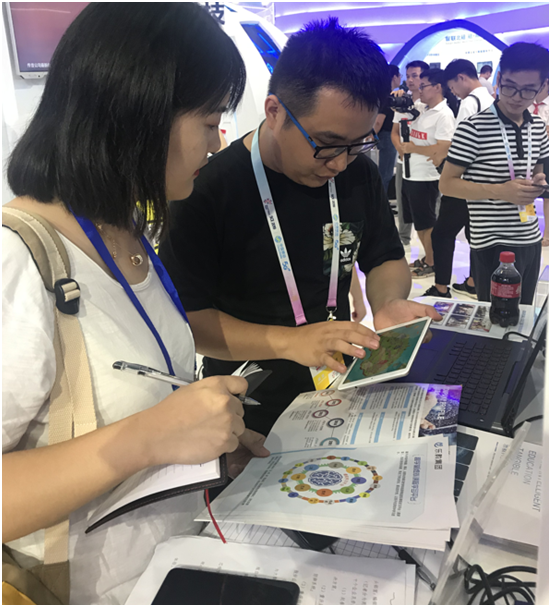 今天是開幕式,也是專業(yè)觀眾觀展的第一天,樂教集團(tuán)就已經(jīng)吸引了不少相關(guān)企業(yè)的興趣和關(guān)注,我們的負(fù)責(zé)人也接受了大批媒體的參訪,展臺(tái)前圍滿了人。