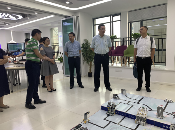 張總為副區(qū)長(zhǎng) 于強(qiáng)講解樂教集團(tuán)為高等院校/中職院校全力打造智能制造創(chuàng)新教學(xué)體系建設(shè), “1:1智能工廠”實(shí)驗(yàn)室/“虛實(shí)結(jié)合”仿真實(shí)驗(yàn)平臺(tái)/數(shù)字資源及現(xiàn)代應(yīng)用技術(shù)實(shí)驗(yàn)室建設(shè)。